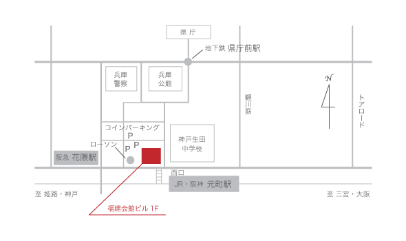 阪急花隈駅(東口)徒歩4分 / 地下鉄県庁前駅(東出口2番 徒歩3分)