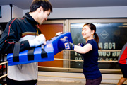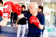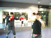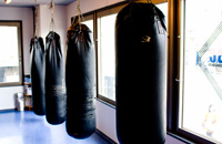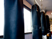 大きな窓から差し込む日光が、とても気分よく運動できます。 グローブ、サンドバッグ、ミット、各種防具など揃っております。